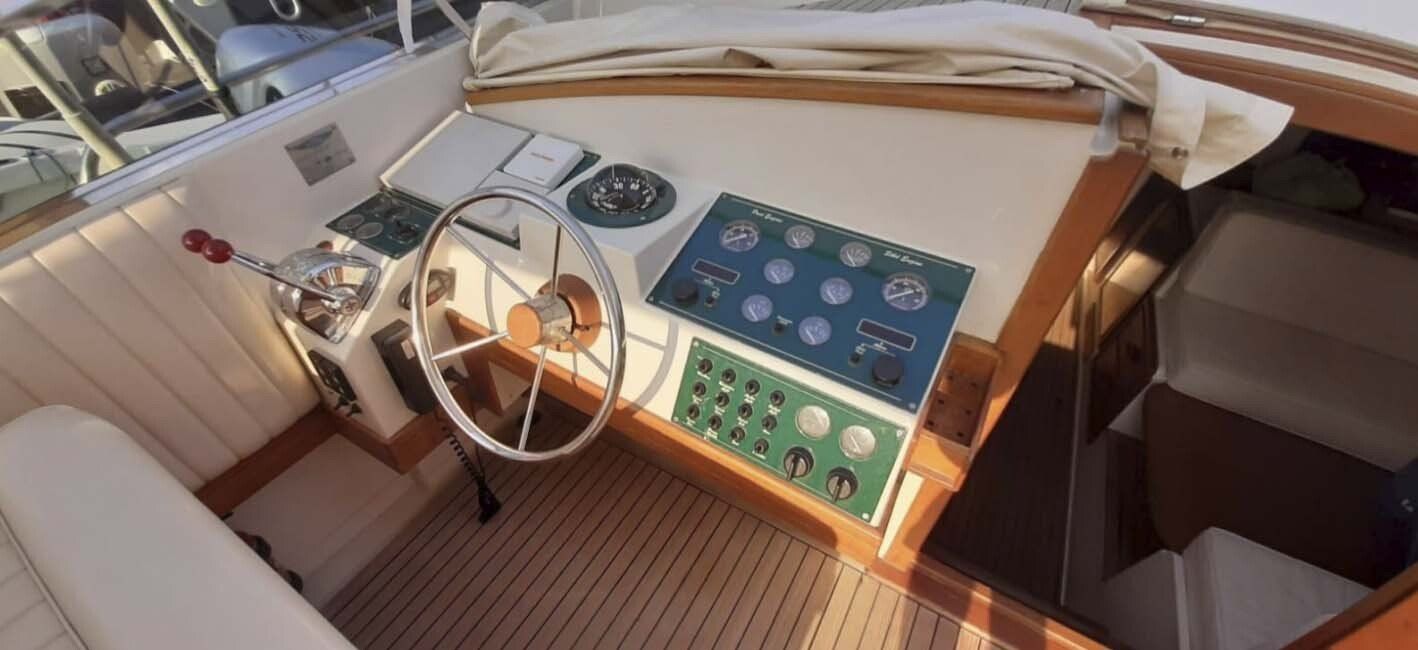 Dotato di: GPS, pilota automatico, impianto HI-FI Bose, camminamenti in teak massello, scaletta bagno di risalita, tendalino parasole, boiler, mobile cucina esterna in teak, plancetta di poppa in teak, cuscineria di prua
